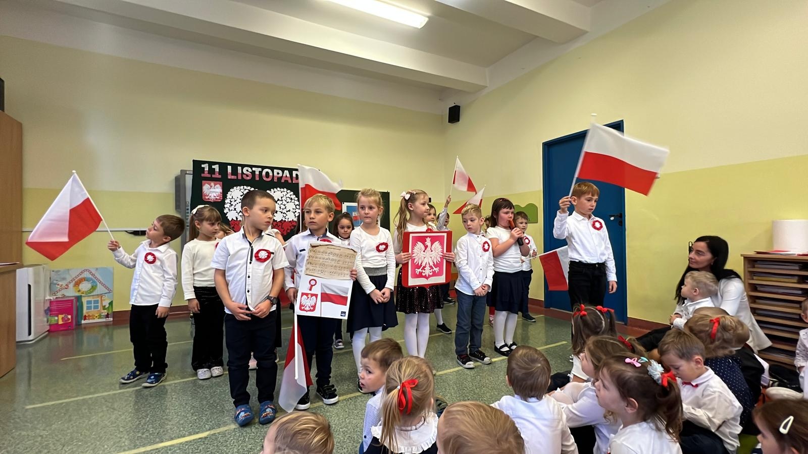bardzo blisko". 7 listopada w naszym przedszkolu odbyły się uroczystości z okazji Narodowego Święta Niepodległości.Dzieci z dumą wzięły udział w ogólnopolskiej akcji „Szkoła do hymnu”, wspólnie odśpiewały „Mazurka Dąbrowskiego”, a także pięknie śpiewały piosenki patriotyczne i recytowały wiersze o Polsce.Był to wyjątkowy, pełen wzruszeń dzień, który pozwolił najmłodszym w sposób radosny i uroczysty uczcić miłość do Ojczyzny .